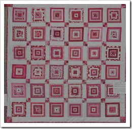 I made this quilt from my many pink and red fabrics and ran very short of time to get it finished for a show. I foolishly tried to quilt it myself. I know a bad workman always blames his tools…..but…. I thought straight lines should be simple!! Firstly the table on my Bernina snapped in half, then I couldn’t find the legs to my big perspex table attachment; then I must have had the walking foot on incorrectly as the stitching was abominable. They say it’s all good practice :) But off to the Bernina Dealer I go.